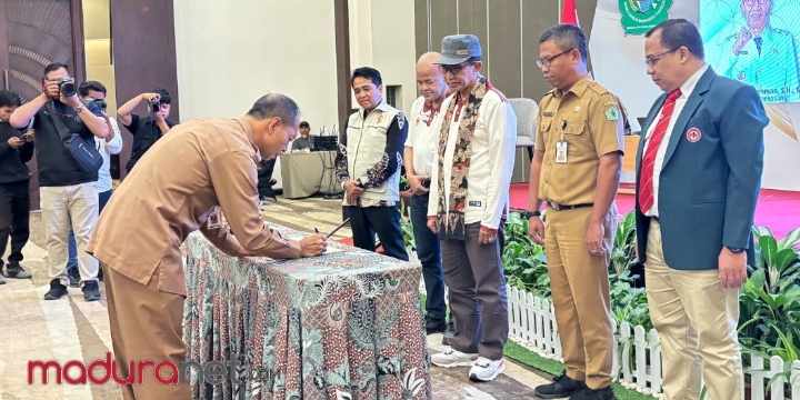 Penandatanganan komitmen pelayanan kesehatan bersama Bupati Pamekasan dalam Rapat Kerja Kesehatan.
