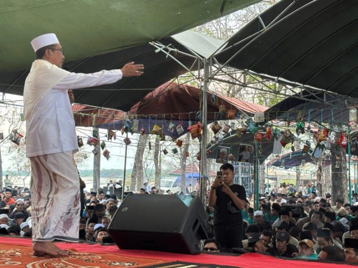Bupati Pamekasan Kholilurrahman saat menyampaikan sambutan pada acara ulang tahun ke-7 Dibawah Naungan Solawat (DNS) di tempat wisata Pantai Jumiang, Ahad (19/10/2025) mengatakan, para pemuda yang tergabung di dalam DNS diharapkan bisa ikut menyemarakkan Hari Jadi Kabupaten Pamekasan dengan mengikuti lomba tersebut.