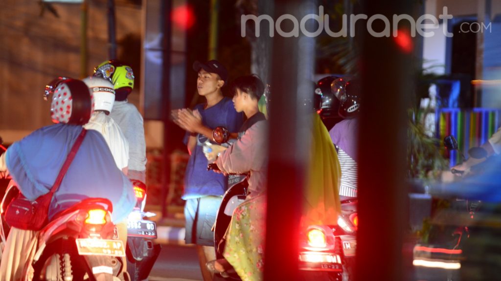 MADURANET – Bocah-bocah kecil menghampiri beberapa kendaraan yang berhenti di traffic light Jl. Jokotole Pamekasan. Bermodal gitar mini, mereka menyanyikan beberapa lagu sambil berpindah dari satu kendaraan ke kendaraan lainnya. Lagu yang dinyanyikan, terkadang pop Indonesia, dangdut bahkan lagu Dedy Kempot berbahasa Jawa, dengan ambyar mereka nyanyikan.