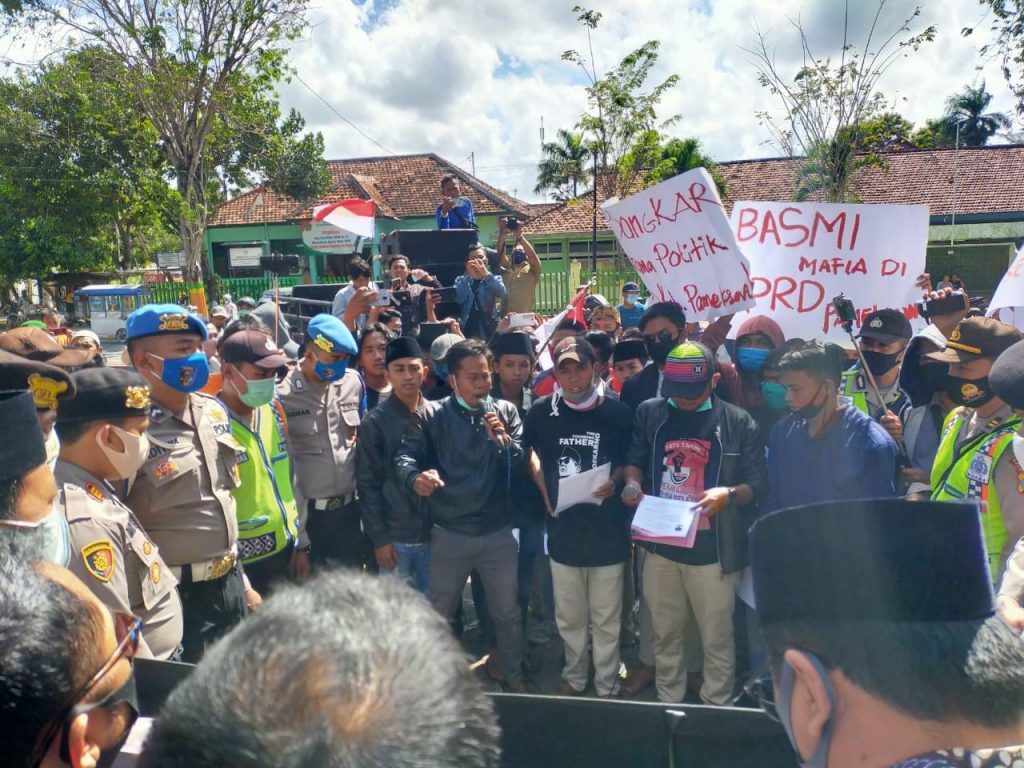 PAMEKASAN, MADURANET – Puluhan mahasiswa dan pemuda yang tergabung dalam Jaringan Kawal Jawa Timur (Jaka Jatim) Pamekasan berdemonstrasi ke kantor DPRD Pamekasan, Senin (13/7/2020). Dalam aksinya, mereka menuntut agar identitas pemalsu tanda tangan Ketua DPRD Pamekasan dan ketua-ketua komisi segera diungkap.