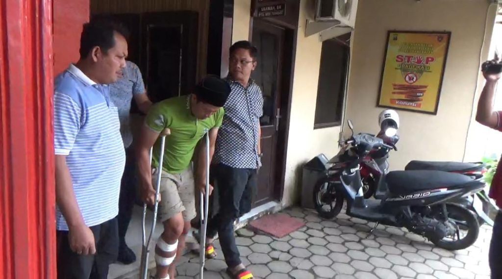 Tersangka pencurian peralatan BMT NU Cabang Bangkalan saat keluar dari ruang pemeriksaan Satreskrim Polres Bangkalan.