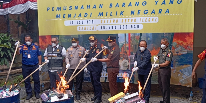 Pemusnahan barang yang menjadi milik negara berupa 13.153.778 batang rokon ilegal senilai 19.580.730.930 oleh Bea Cukai Madura.