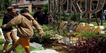 PAMEKASAN, MADURANET — Aksi unjuk rasa menolak penghapusan 86 ribu jiwa dari data penerima Universal Health Coverage (UHC) di Pamekasan, Selasa (9/12/2025), berujung perusakan fasilitas gedung DPRD Pamekasan.