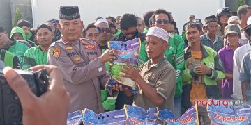 PAMEKASAN, MADURANET – Ratusan warga menerima bantuan beras gratis dari Polres Pamekasan. Bantuan diberikan langsung di halaman Mapolres Pamekasan, Jawa Timur, Jalan Raya Nyalan, Kelurahan Kowel, Jumat (20/2/2026).
