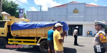 PAMEKASAN, MADURANET – Satuan Lalu Lintas (Satlantas) Polres Pamekasan mulai menertibkan truk pengangkut material seperti pasir, tanah, dan batu yang melintas tanpa penutup terpal. Penertiban ini difokuskan untuk mengurangi potensi bahaya bagi pengguna jalan lain.