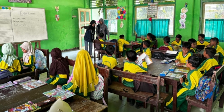 Kegiatan berlangsung di dalam kelas dengan dukungan penuh dari Kepala sekolah, Dosen Pembimbing Lapangan, perangkat desa, dan masyarakat setempat.