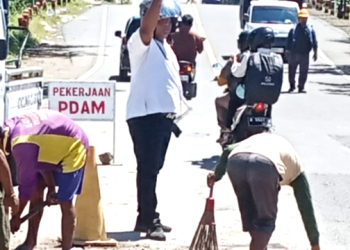 PAMEKASAN, MADURANET – Lubang parah di Jalan Raya Larangan Tokol, dekat gerbang selamat datang Kabupaten Pamekasan, mulai diperbaiki setelah diketahui dipicu kebocoran pipa air milik Perusahaan Daerah Air Minum (PDAM) ...